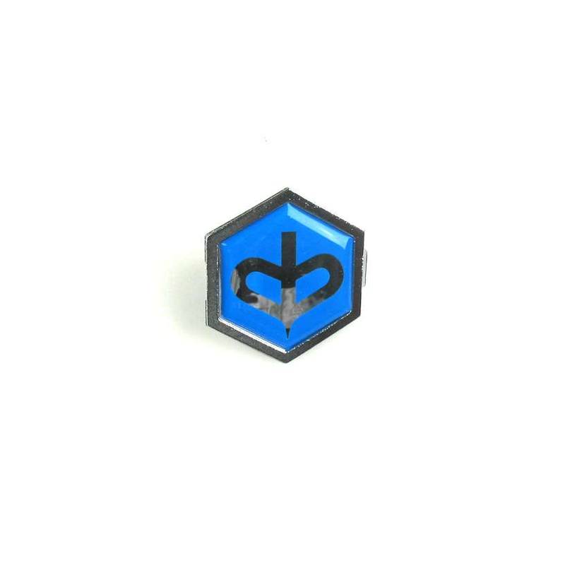 Plakette PIAGGIO aus Kunststoff zum stecken mit Piaggio Logo und silber Um