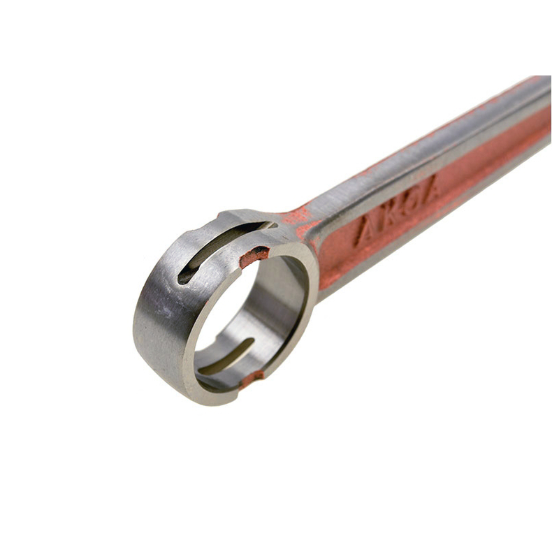 Der Racing-Pleuel wurde komplett überarbeitet und verstärkt. Die zusätzlichen Schmierkerben im hinteren Auge bieten eine nochmals verbesserte Schmierung des Hubzapfenlagers.