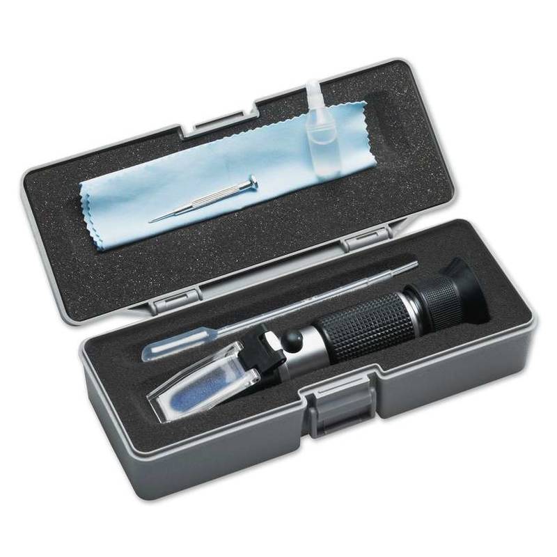 Mit dem Refraktometer RX3 erhalten Sie einen hilfreichen Begleiter von AEG, der es Ihnen erlaubt die Säuredichte von KFZ-Batterien, den Kühlerfrostschutz und den Äthylen-Gehalt des Wischwassers zu bestimmen. Bestimmen Sie einfach und schnell den Gefrierpunkt oder den Ladezustand. Somit können Sie Ihrem Fahrzeug eine optimale Versorgung bieten und Ihnen gleichzeitig die Sicherheit vor unerwarteten Ausfällen oder Schwierigkeiten.