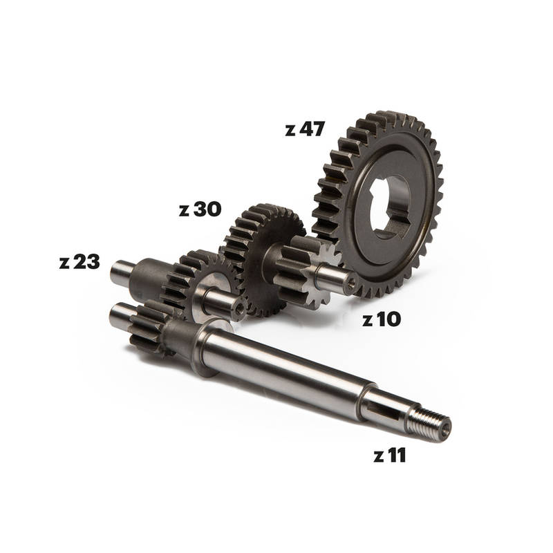 Aufgrund der geradeverzahnten Zahnräder kann der Reibungsverlust sowie der Druck auf die Lager auf ein Mindestmass reduziert werden.