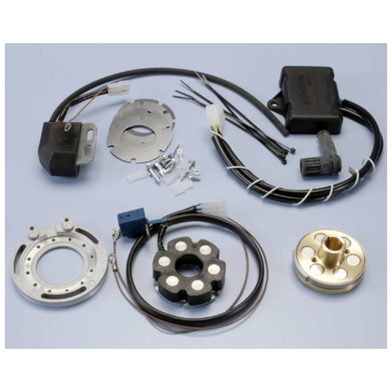 Von Polini können wir Euch die erste Innenrotorzündanlage mit Lichtspule anbieten. Mit ca. 80 Watt Leistung könnt Ihr bei dieser Zündung rechnen. Angesichts der Konstruktion müsste es zwar Außenrotor heißen, da die Spulen des Stators seitlich liegen. Das Gewichtsreduzierte und Feingewuchtete Polrad garantiert eine optimale Leistungsentfaltung sowie ein weit aus schnelleres Hochdrehen des Motors im Gegensatz zu den originalen Zündanlagen, das Resultat ist also ein besserer Anzug und Durchzug sowie ein besseres Ansprechverhalten deines Moto.