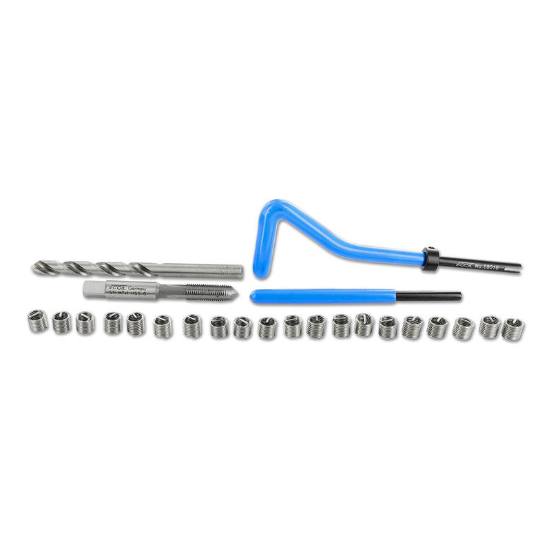 Dieses M7 Gewindereparaturset ermöglicht eine schnelle und kostengünstige Reparatur von ausgerissenen oder ausgedrehten Gewinden in Stahl, Chromstahl und Alu.