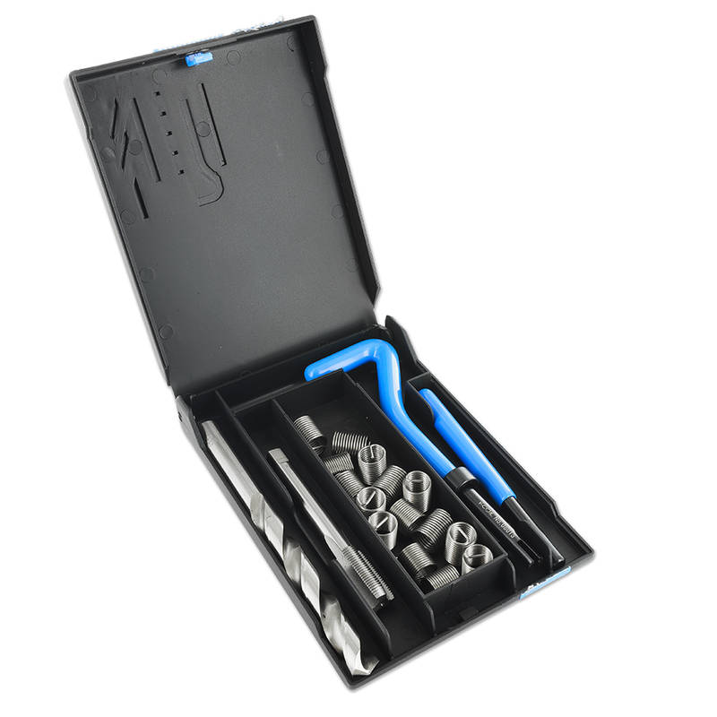 Dieses M10 Gewindereparaturset ermöglicht eine schnelle und kostengünstige Reparatur von ausgerissenen oder ausgedrehten Gewinden in Stahl, Chromstahl und Alu.
