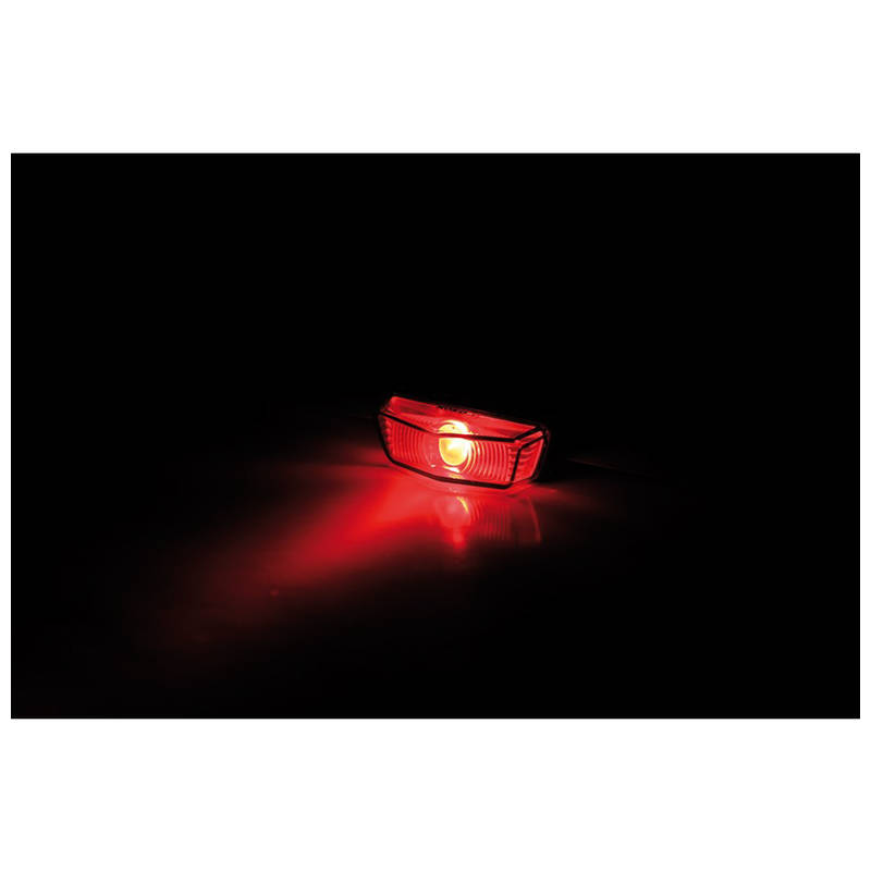 Kleines Rücklicht mit einer Power-LED und rotem Glas, E-geprüft. Ohne Nummernschildbeleuchtung.