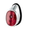 Klassisches, schlichtes Rücklicht im Oldschool-Look. Das Rücklichtglas ist in einem Aluminium Rahmen eingearbeitet. Das Kennzeichen des Fahrzeuges wir durch ein unten am Rücklicht angebrachtes transparentes Glas beleuchtet. Dieses Rücklicht ist ähnlich wie die alten CEV, Hella oder ULO Rücklichter.