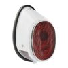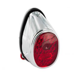 Klassisches, schlichtes Rücklicht im Oldschool-Look. Das Rücklichtglas ist in einem Aluminium Rahmen eingearbeitet. Das Kennzeichen des Fahrzeuges wir durch ein unten am Rücklicht angebrachtes transparentes Glas beleuchtet. Dieses Rücklicht ist ähnlich wie die alten CEV, Hella oder ULO Rücklichter.