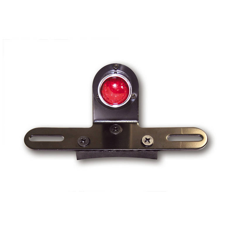 Mit starrem Nummernschildhalter und Nummernschildbeleuchtung. Die neuste Lichttechnik im stabilen Metallgehäuse in Schwarz und rotem Glas, E-geprüft.