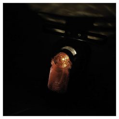 Rücklicht mit Bremslichtfunktion, verchromtem Gehäuse und rotem Glas inklusive Kennzeichenhalter und Nummernschildbeleuchtung, E-geprüft.