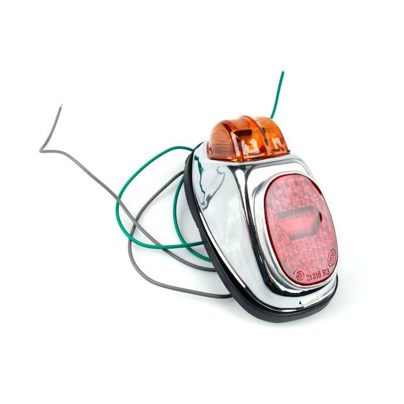Klassisches, schlichtes Rücklicht im Oldschool-Look. Das Rücklichtglas ist in einem Aluminium Rahmen eingearbeitet.