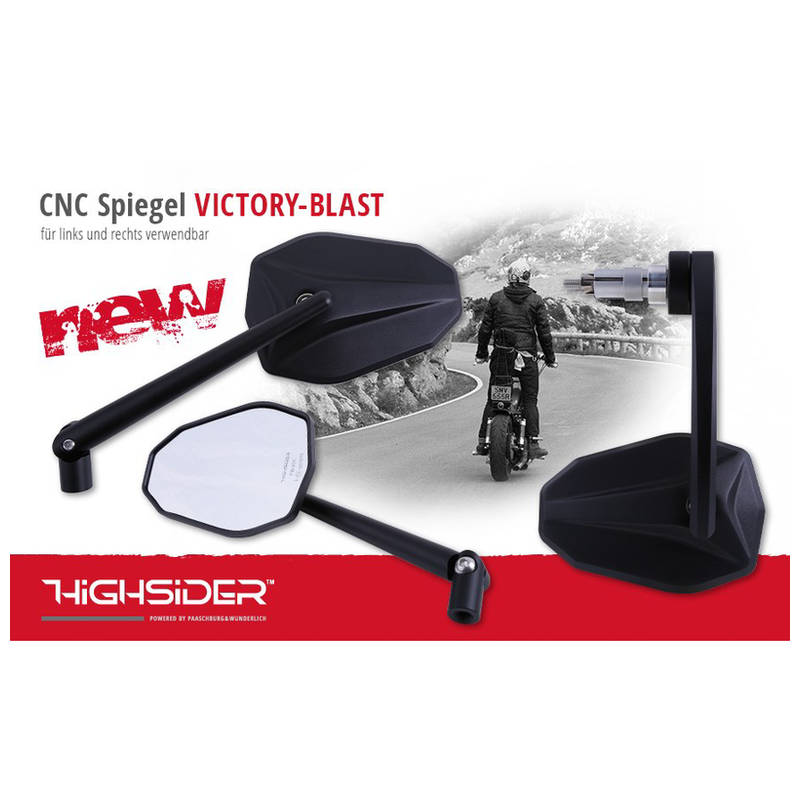 Rückspiegel *HIGHSIDER* EVO – VICTORY-BLAST CNC in SCHWARZ inkl. Adapter füri. Ø 12 bis 22mm (L/R, Einbau am Lenkerende