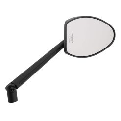 Edler Universalspiegel mit einem Kopf aus schwarz-matt-eloxiertem Aluminium und verstellbarem Arm. Dank der Verwendung eines zweiten Gelenks am Arm ergeben sich zusätzliche Einstellmöglichkeiten für deine Sicherheit. Inklusive extra Adapter M10x1.25mm mit Linksgewinde für Yamaha. Für linke- und rechte Seite verwendbar, E-geprüft.