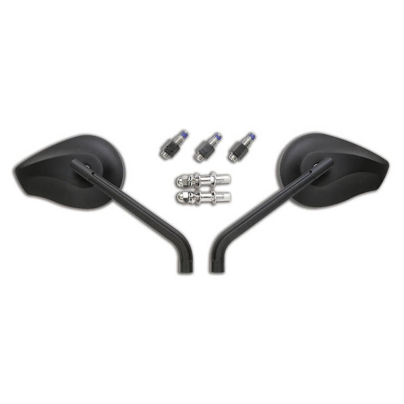 Rückspiegel HIGHSIDER PHOENIX 1, aus Aluminium schwarz eloxiert, für Harley-Davidson-Modelle. Zusätzlich 2x Spiegeladapter M10x1.25mm und 1x extra Linksgewinde- Adapter für YAMAHA, Paar, E-geprüft