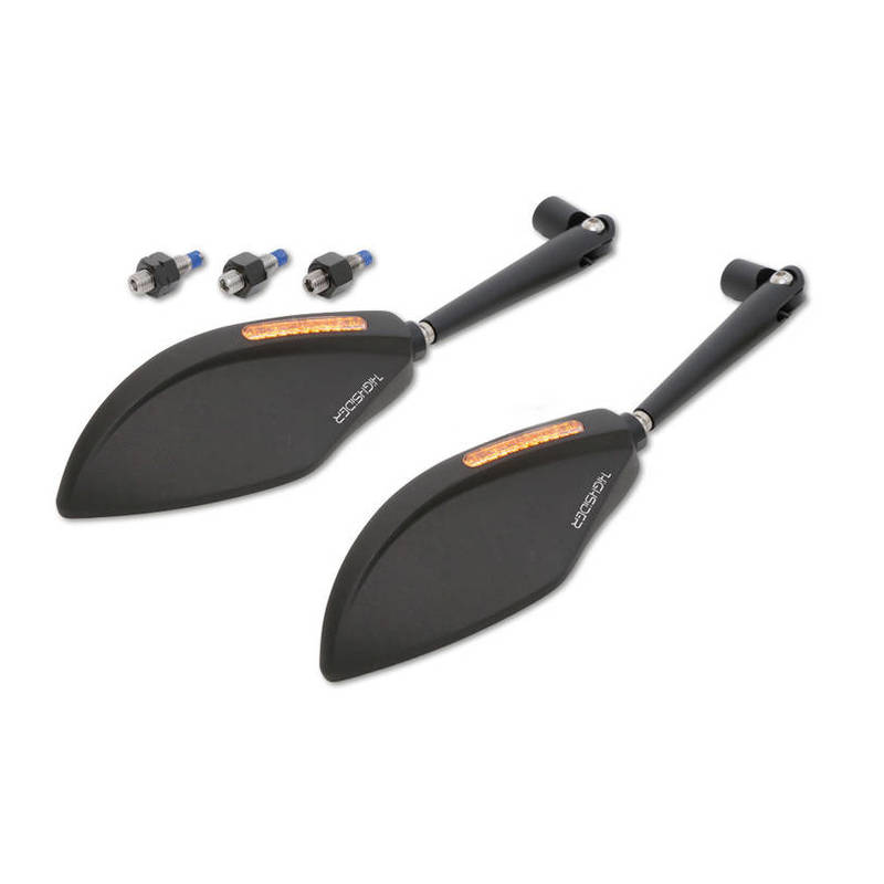 Rückspiegel HIGHSIDER TOREZZO mit LED Blinker, Alu schwarz eloxiert, inkl. extra Linksgewinde- Adapter für YAMAHA, Rückspiegel und Blinker, Paar, E-geprüft