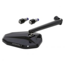 Edler Universalspiegel mit einem Kopf aus verchromtem Aluminium und verstellbarem Arm. Dank der Verwendung eines zweiten Gelenks am Arm ergeben sich zusätzliche Einstellmöglichkeiten für deine Sicherheit. Inklusive extra Adapter M10x1.25mm mit Linksgewinde für Yamaha. Für linke- und rechte Seite verwendbar, E-geprüft.