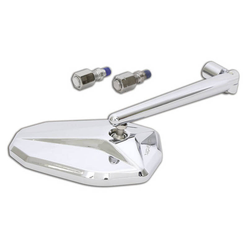 HIGHSIDER Spiegel VICTORY, Aluminium Kopf verchromt, Arm verstellbar, für linke und rechte Seite verwendbar, inkl. extra Adapter M10x1.25mm Linksgewinde, E-geprüft