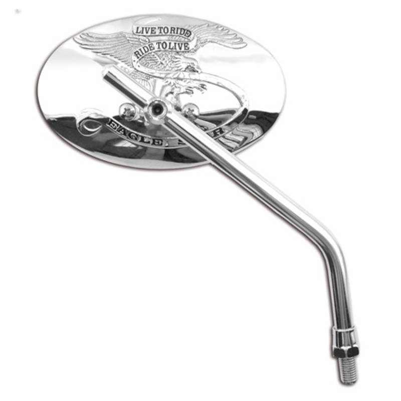 Verchromter Universalrückspiegel wie er auch an den Custom-Bikes in den Staaten verbaut wird.