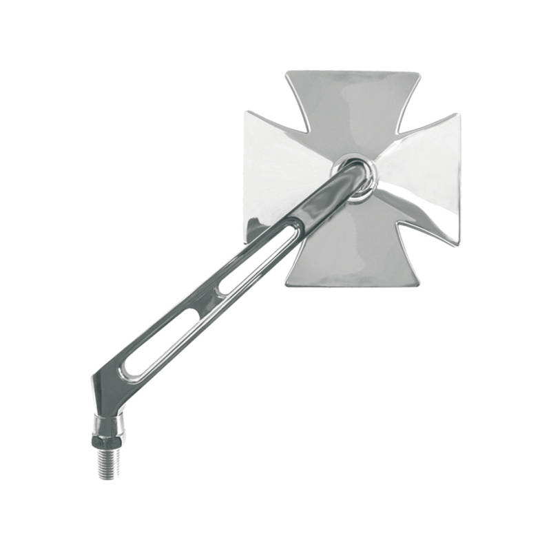 Massiver Metallrückspiegel im «Iron-Cross» Look. Biker Optik für alle Mofas und Roller. Natürlich auch für grosse Bikes tauglich.