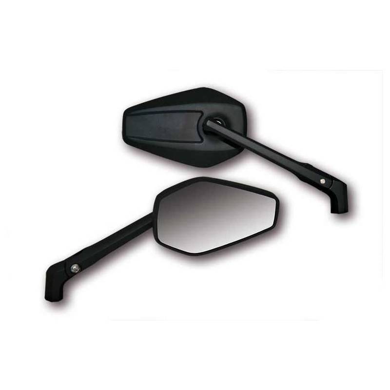 SHIN YO Spiegel BOOSTER 2 ALU, matt schwarz eloxiert, M10 Rechtsgewinde, inklusive 1 extra Adapter M10 Linksgewinde für Yamaha, Paar, E-geprüft.