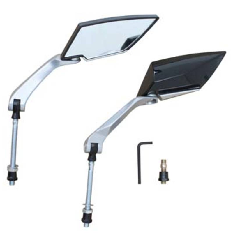 Optisch wunderschöne Rückspiegel von Replay. Das Spiegelgehäuse ist aus Kunststoff, die Arme und Aufnahmen aus Aluminium gefertigt.