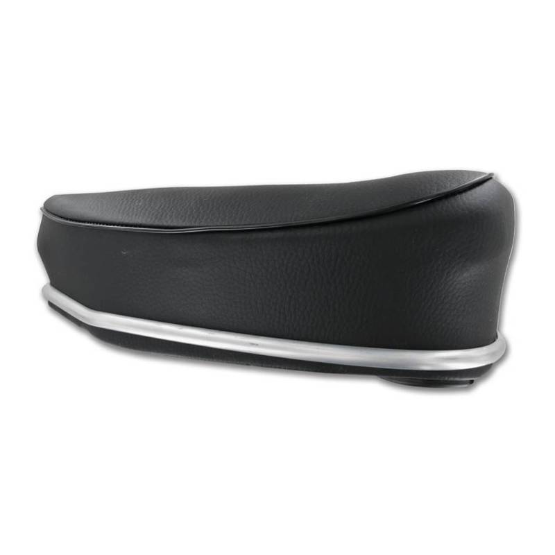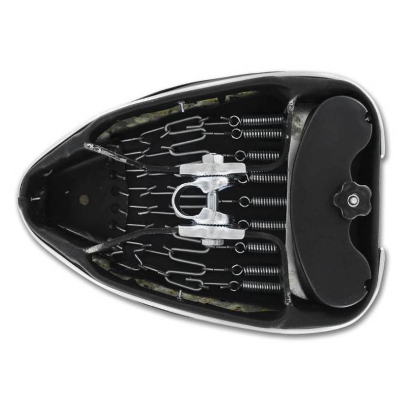 Der klassische Puch Maxi Sattel mit Feder-Grundplatte, Wekzeugbox und einer Alu-Zierleiste.