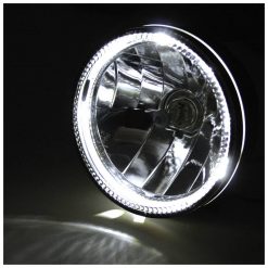 Die Innovation für Ihre Sicherheit – das Modell SKYLINE ist ein konventioneller, mit einer H4-Glühbirne (12V 60/55W) ausgestatteter Hauptscheinwerfer, der über einen Power LED-Standlichtring verfügt. Das Ganze verpackt in einem hochwertig verarbeiteten, verchromten Metall-Gehäuse. Die LED-Technik und der Einsatz erzeugen ein symmetrisches, helles Licht für eine optimale Wahrnehmung durch andere Verkehrsteilnehmer, E-geprüft.