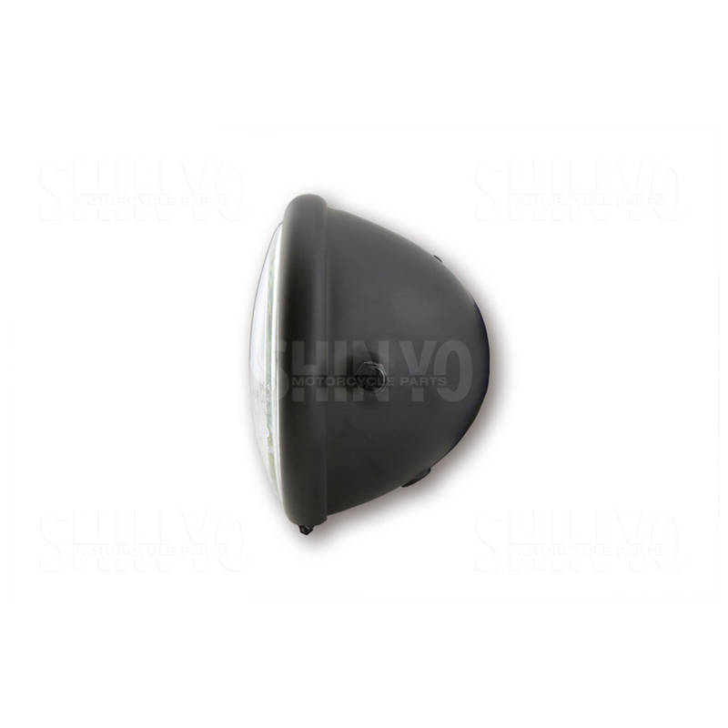 Scheinwerfer *SHIN YO* BATES-STYLE – H4 (Ø 155 x 155mm) in schwarz matt fürseitliche Befestigung (E-Homologiert)