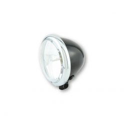 SHIN YO 4 1/2 Zoll Scheinwerfer BATES STYLE, geprägtes Glas, BA20D, mit Fern-, Abblend- und Standlicht, schwarz seidenmattes Metallgehäuse, Befestigung unten, E-geprüft.