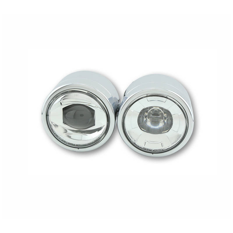 Das LED-Scheinwerferset im stabilen Metallgehäuse zur seitlichen Befestigung verleiht Ihrem Bike den besonderen Look. Der 4 Zoll Abblend- und Fernscheinwerfer ist universell verwendbar für sämtliche Motorradumbauten.