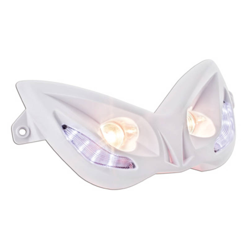 Für alle Aerox/Nitro-Fahrer bieten wir ab sofort sehr gelungene Scheinwerfer in bekannter Doppeloptik mit integrierten und dezenten LED-Blinkern. Mit 2×20-Watt-Halogenbirnen bestens ausgestattet für Nachtfahrten. Die LED-Blinker in stylischem Design machen den Scheinwerfer zu einem echten Hingucker.