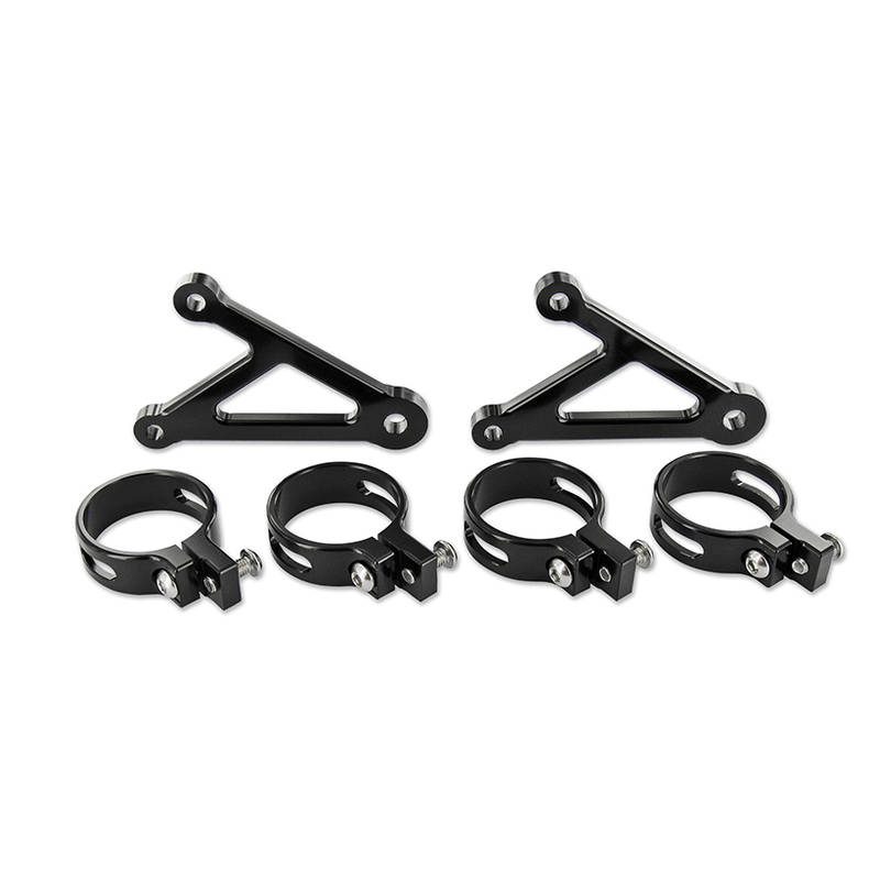 Paar Scheinwerferhalter für die Montage an der Gabel aus hochfestem Aluminium CNC gefräst und schwarz eloxiert.
