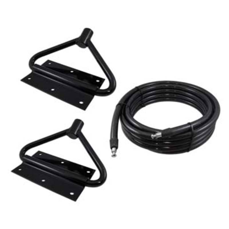 Dieser hochwertige Diebstahlsicherungskit besteht aus einem 8 Meter langen und 20mm dicken Drahtseil, zwei Halterungen und sechs Verankerungsbolzen für die Bodenmontage. So bleiben Ihre Motorräder und Roller vor Ihrer Werkstatt.