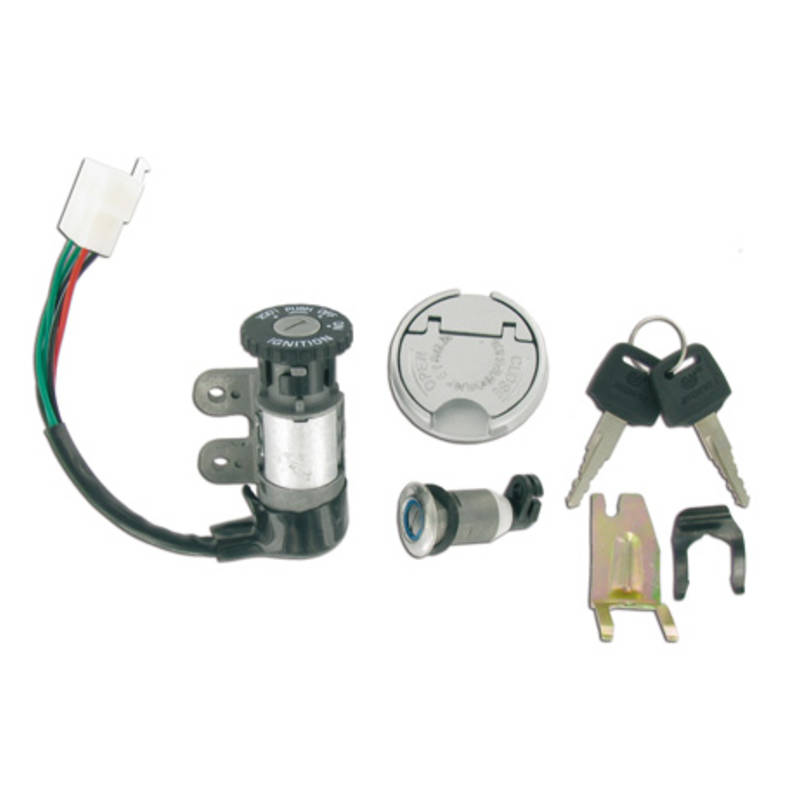 Kompletter Schlossatz inklusive Zündschloß, Sitzbankschloß, Tankdeckel abschließbar, 2 Schlüsseln und Befestigungsmaterial. Passend in allen Fahrzeugen mit Fahrzeugaufbau wie Rex RS450, Baotiab BT50QT-9, Benzhou City Star usw.
