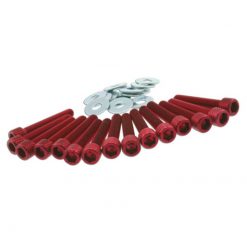 STR8-Motordeckeldekoschrauben für Minarelli-Motoren. Die Schrauben sind aus Aluminium und sollten nur zur reinen Showzwecken verwendet werden. Die schwarz lackierten hingegen können ohne Probleme als Ersatz für Originalschrauben verwendet werden.