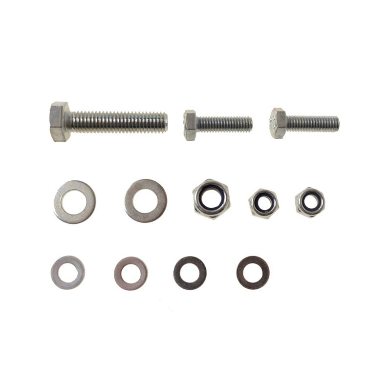 Alle Schrauben zur Befestigung des Puch Maxi S Gepäckträgers. Sechskantschrauben, Stopmuttern und Unterlagsscheiben sind stahl blau verzinkt. Top Qualität.