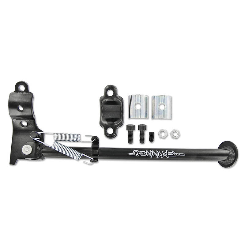 Sehr hochwertiger und stabiler Seitenständer von Buzzetti mit runder Aufnahme zur Schwingenbefestigung. Eine radial angeordnete Schraube garantiert eine sichere Klemmung des Ständers.