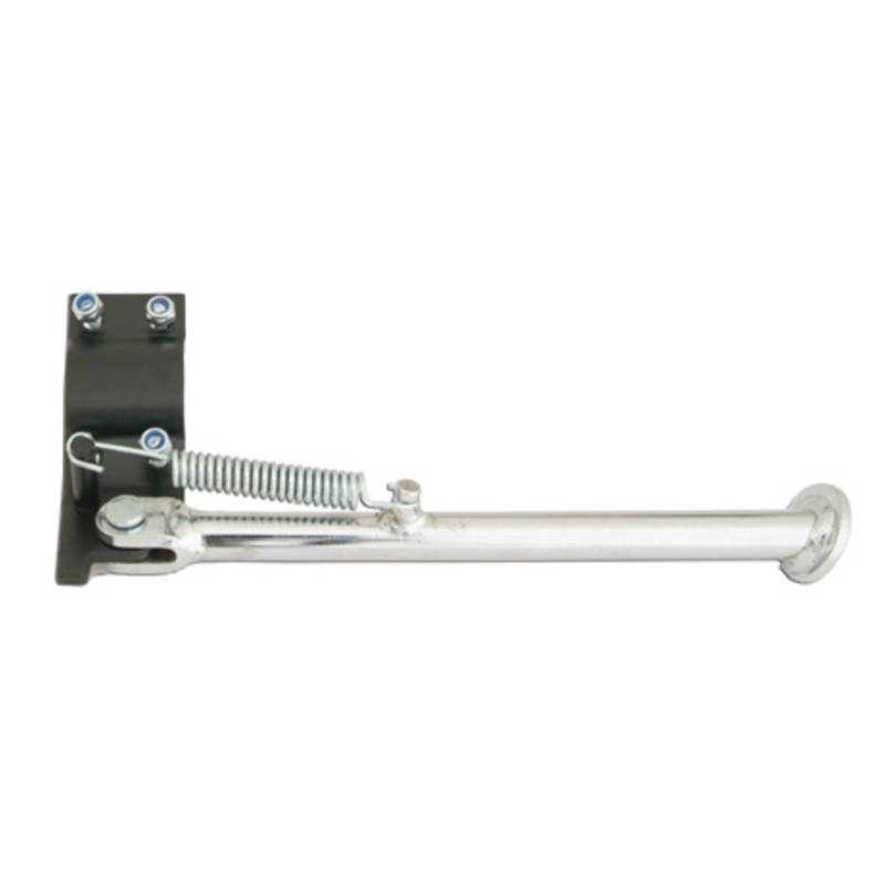 Verchromte Seitenstütze für einfache Bedienung und lässige Optik. Einfache Montage links an der Schwinge.