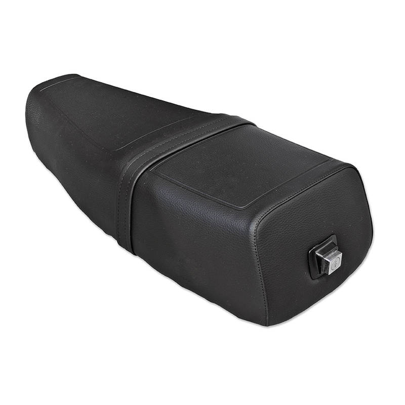 Sattel inkl. Schloss, Halteriemen, Halterung und Anschlaggummi.