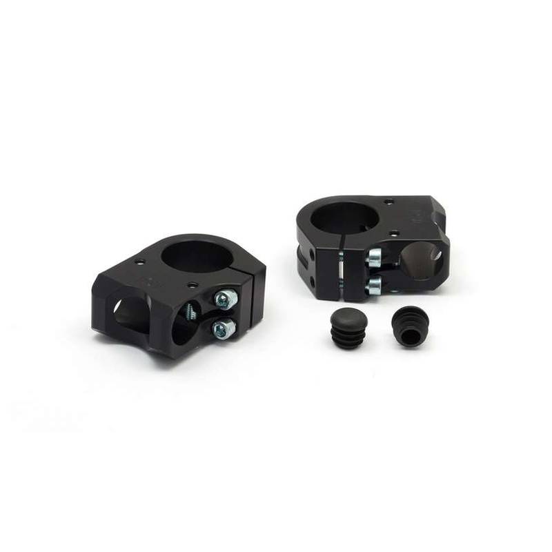 Standrohrschellen *LSL* (Paar) Sport-Match aus Alu in SCHWARZ (Anschluss: Ø39 mm – 5.0°) inkl CH-Hom.
