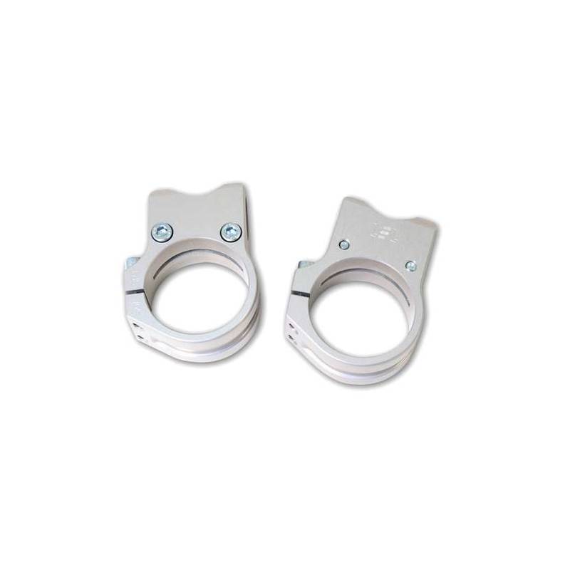 Standrohrschellen *LSL* (Paar) Sport-Match aus Alu in SILBER (Anschluss: Ø 38 mm – 5.0°) inkl CH-Hom.