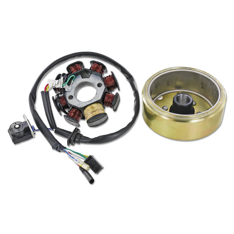 Es gibt mehrere Varianten dieser Lichtmaschinen für diese Motoren. Allerdings kann man die Unterschiede sehr leicht ausmachen. Es gibt Statoren mit 6, 8 oder 11 Spulen. Diese Variante verfügt über 8 Spulen. Vor dem Bestellen bitte prüfen, wieviele Spulen die benötigte Lichtmaschine besitzt.