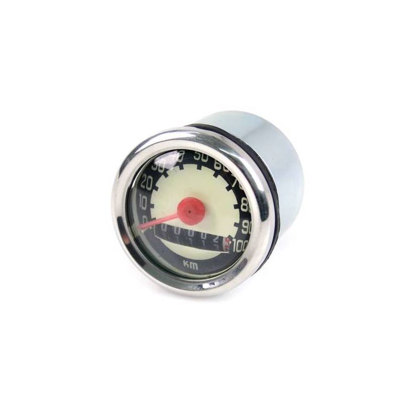 Tacho-Kopf *MMB* (Typ VDO) OLD SCHOOL Ø 48mm bis 100 km/h (Zifferblatt: elfenbein / Ring: chrom / Anschluss zentrisch)