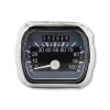 Klassischer Tachometer mit Abblendlicht, Fernlicht, Blinker und Benzinstand Kontrollleuchten.