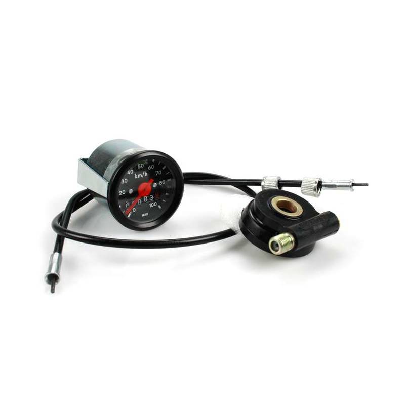 Tacho-Set *MMB* (Typ VDO) Ø 48mm bis 100 km/h (Zifferblatt: schwarz / Ring:schwarz) inkl. Saite- & Antrieb zu Puch