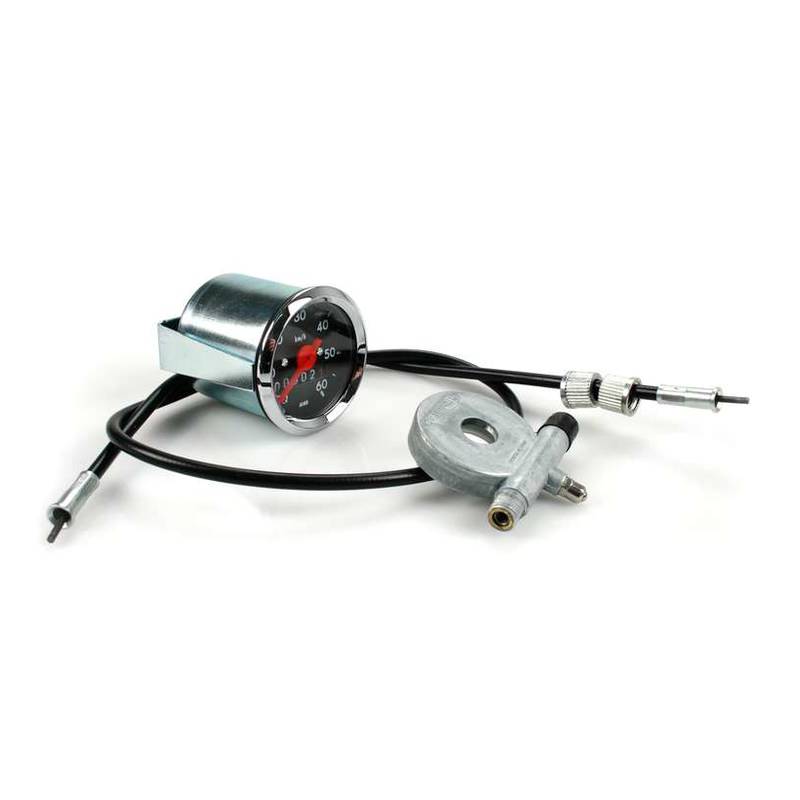 Tacho-Set *MMB* (Typ VDO) Ø 48mm bis 60 km/h (Zifferblatt: schwarz / Ring: chrom) inkl. Saite- & Antrieb zu Puch