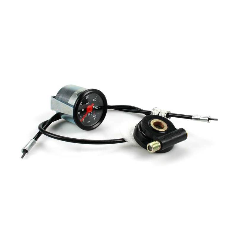 Tacho-Set *MMB* (Typ VDO) Ø 48mm bis 60 km/h (Zifferblatt: schwarz / Ring: schwarz) inkl. Saite- & Antrieb zu Puch