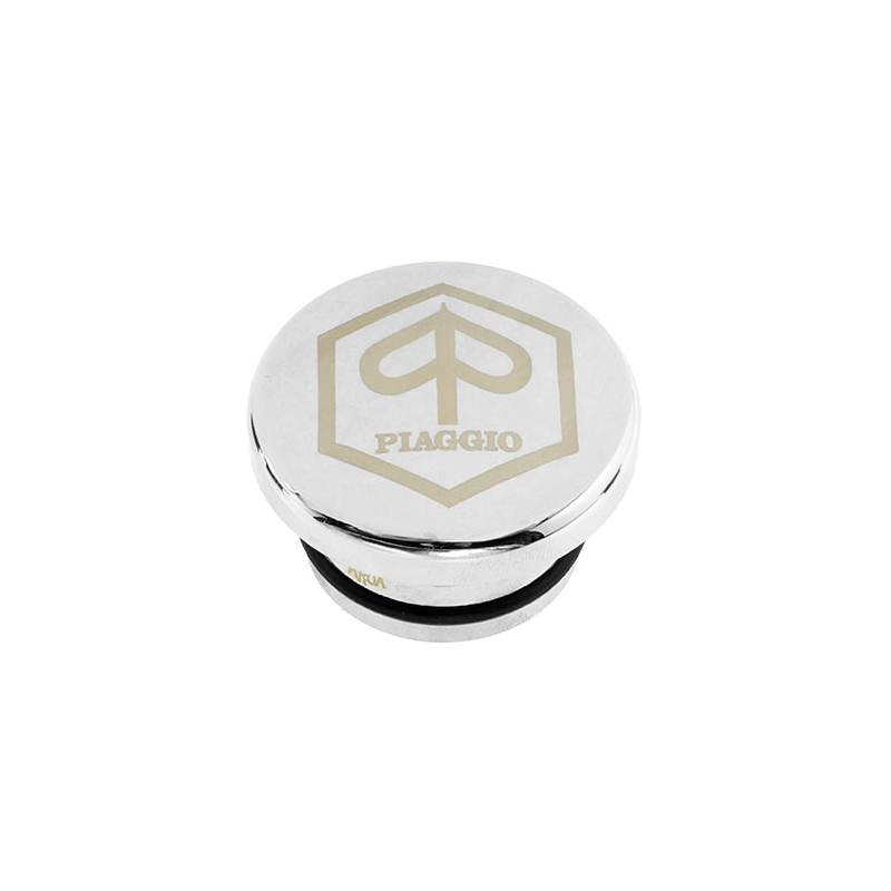 CNC gefräster Tankdeckel mit eingraviertem Logo, passend zu Piaggio SI.