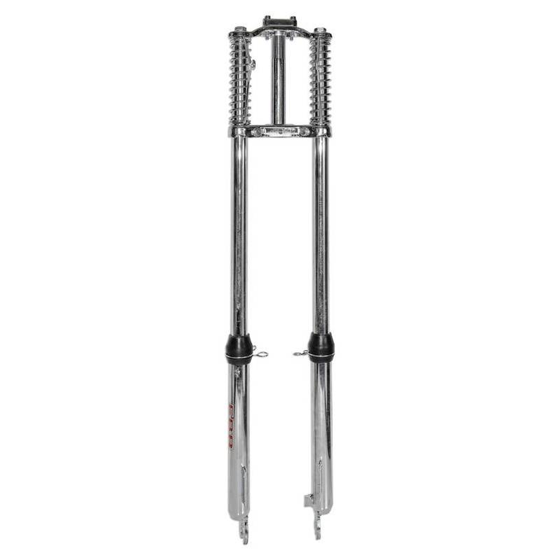 Custom-Gabel für Puch Maxi und Puch X30, verchromt mit einer Draht Lampen-Halterung inkl. Zierfedern für den gewünschten Edel-Chrom-Look.