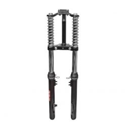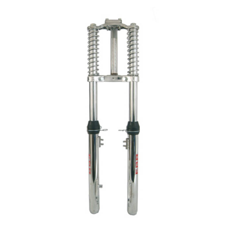 Teleskopgabel von EBR als Ersatz für die originale Kurzschwingengabel. Deutlich bessere Strassenlage und ein direktes Fahrgefühl zeichnen diese Gabel aus. Für stark getunte Ciao und Rennmofas eine fast unverzichtbare Fahrwerksverbesserung. Hochwertiges Chromfinish.