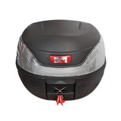 Praktisches 36 Liter Top Case von Coocase. Das Klicksystem mit Stahlklinke, zwischen Top Case und Grundplatte ermöglicht ein schnelles Montieren / Demontieren. Endanschläge am Deckel verhindern ein zu weites Öffnen.