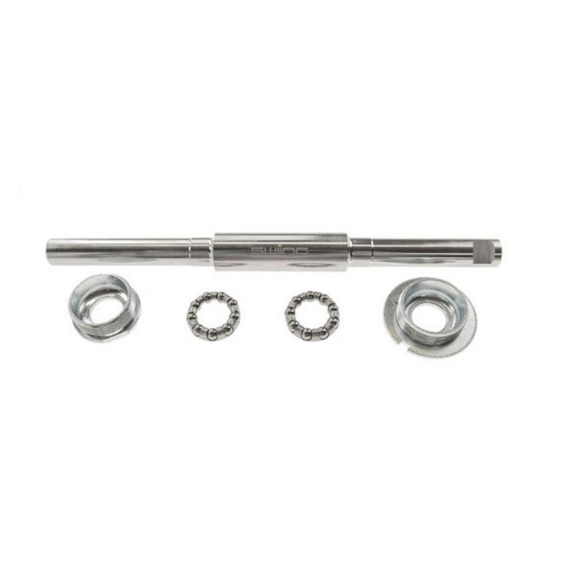 Die Tretlagerachse ist aus rostfreiem Stahl (Chromstahl) gefertigt.